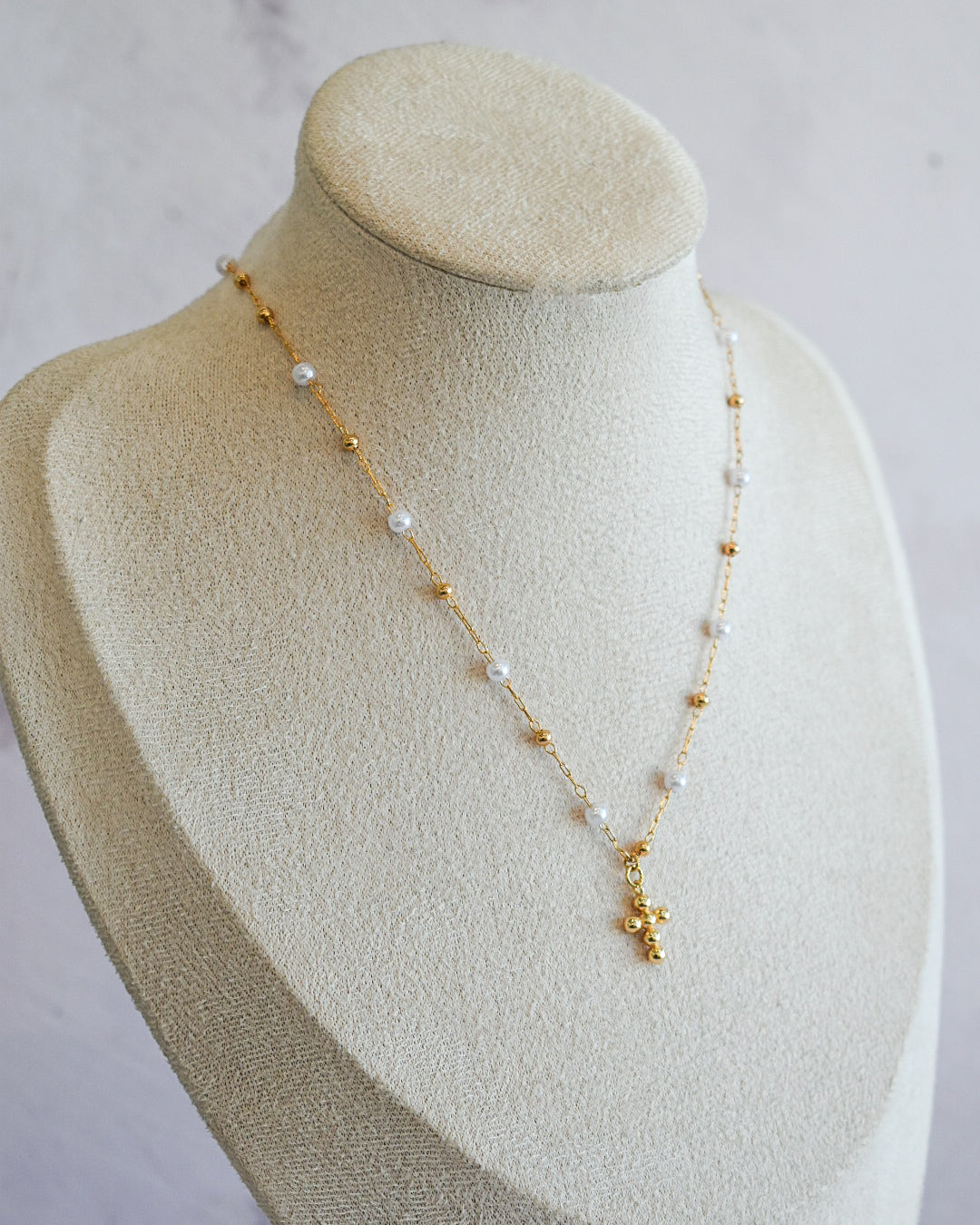 💖 Material: Chapa de oro con perlitas y dije de cruz de bolitas en chapa de oro.